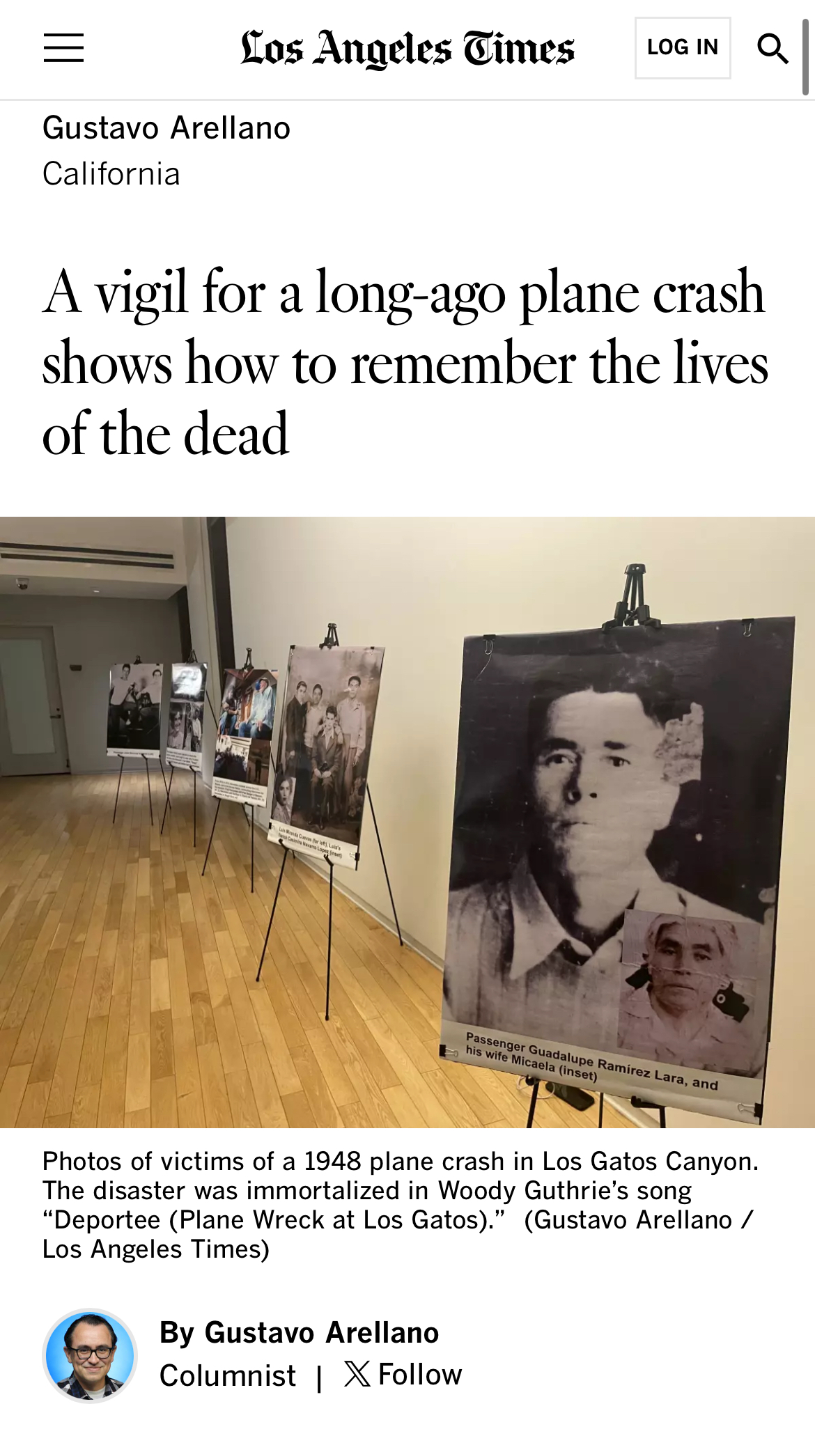 ALL THEY WILL CALL YOU is a feature length documentary that follows the fifteen-year journey of author Tim Z. Hernandez as he investigates the buried history of the 1948 plane crash in Los Gatos Canyon, California. Using a docu-detective, road movie approach to the story, Hernandez seeks to uncover the names of the Mexican passengers killed in the crash and buried in a mass grave in California’s central valley. While the casualties were reported simply as “deportees” by American newspapers, the legendary folk singer Woody Guthrie composed a popular protest song that memorialized the victims and raised provocative questions about whose lives we recognize and remember. Guthrie’s song was recorded by folk music icons such as Bob Dylan, Peter Seeger, Joan Baez, Dolly Parton, Johnny Cash, and countless others.
