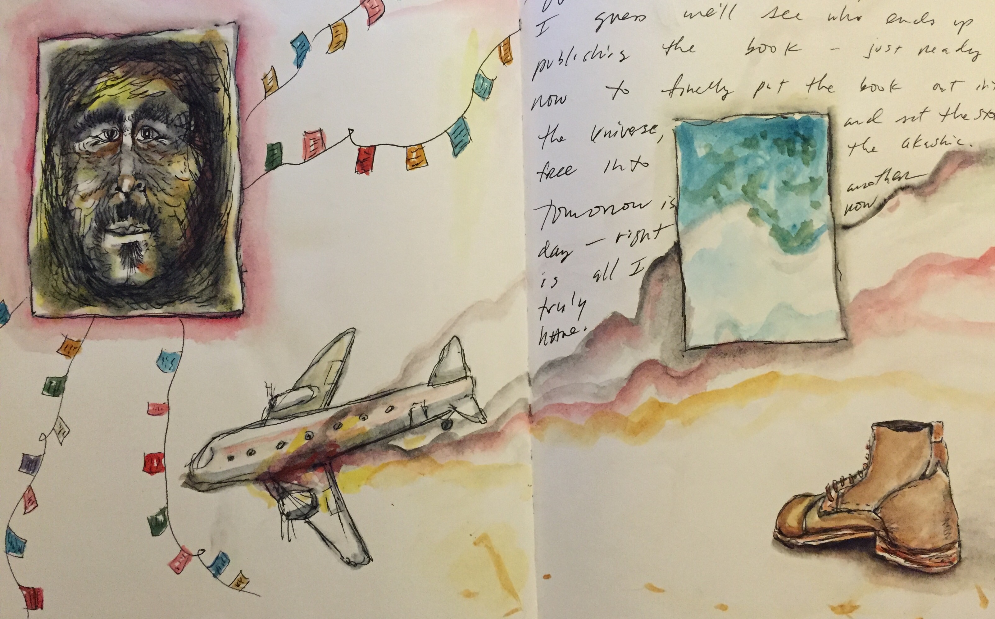 Since 1992, Hernandez has painted murals and exhibited his work in galleries, cultural institutions, and Universities. Over the years he’s worked primarily with acrylics, watercolor, charcoal, ink, and collage, and his art has graced book covers, t-shirts, and posters for concerts and cultural events. Hernandez has also worked with silkscreen, and continues to experiment with different mediums and techniques. In 1999, he was selected as the apprentice for Bay Area master muralist Juana Alicia, to work on a large scale fresco mural titled, “Santuario/ Sanctuary,” (pictured at the top left, below) which is permanently installed at Gate G in the San Francisco International Airport. The fresco technique used by Juan Alicia was passed on to her by her teachers, Stephen Dimitroff and Lucienne Bloch, who honed their technique under Mexican muralist, Diego Rivera. Hernandez has collaborated with many visual artists on larger projects as well, and has been commissioned for special projects by groups like Univision, Fresno State, and the American Friends Service Committee, for which he painted a portable mural for their Tamejavi Festival (pictured at the far bottom) in collaboration with artist, Ramiro Martinez. Hernandez frequently uses visual imagery in his live performances, as well as in his books.